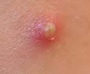 - (만약 살살 눌러도 터지지 않는 다면) 얇은 바늘을 소독한 후에 (에탄올이나 과산화수소수 등) 아주 살짝 찔러줍니다.